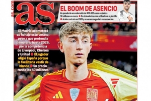 怀森成为《阿斯报》3月25日的封面人物,媒体指出,皇马对这位19岁中卫感兴趣,尽管伯恩茅斯打算将怀森留到2026年,但考虑到面临利物浦、切尔西和曼联的竞争,皇马打算今夏就采取行动签下他。